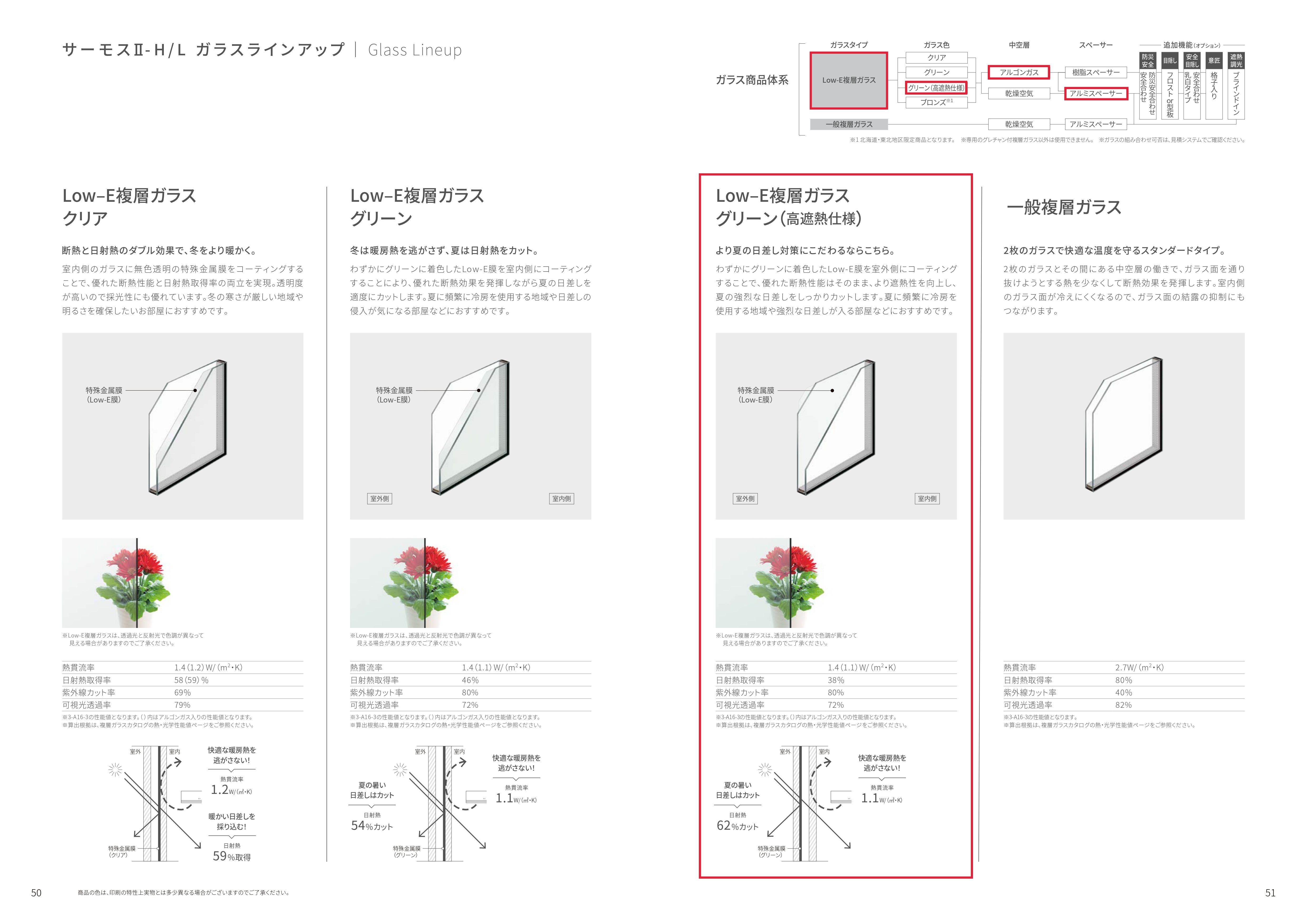 ー標準仕様ーLIXILサーモスL ・標準仕様>>・カラー/ハンドル/型ガラス>>