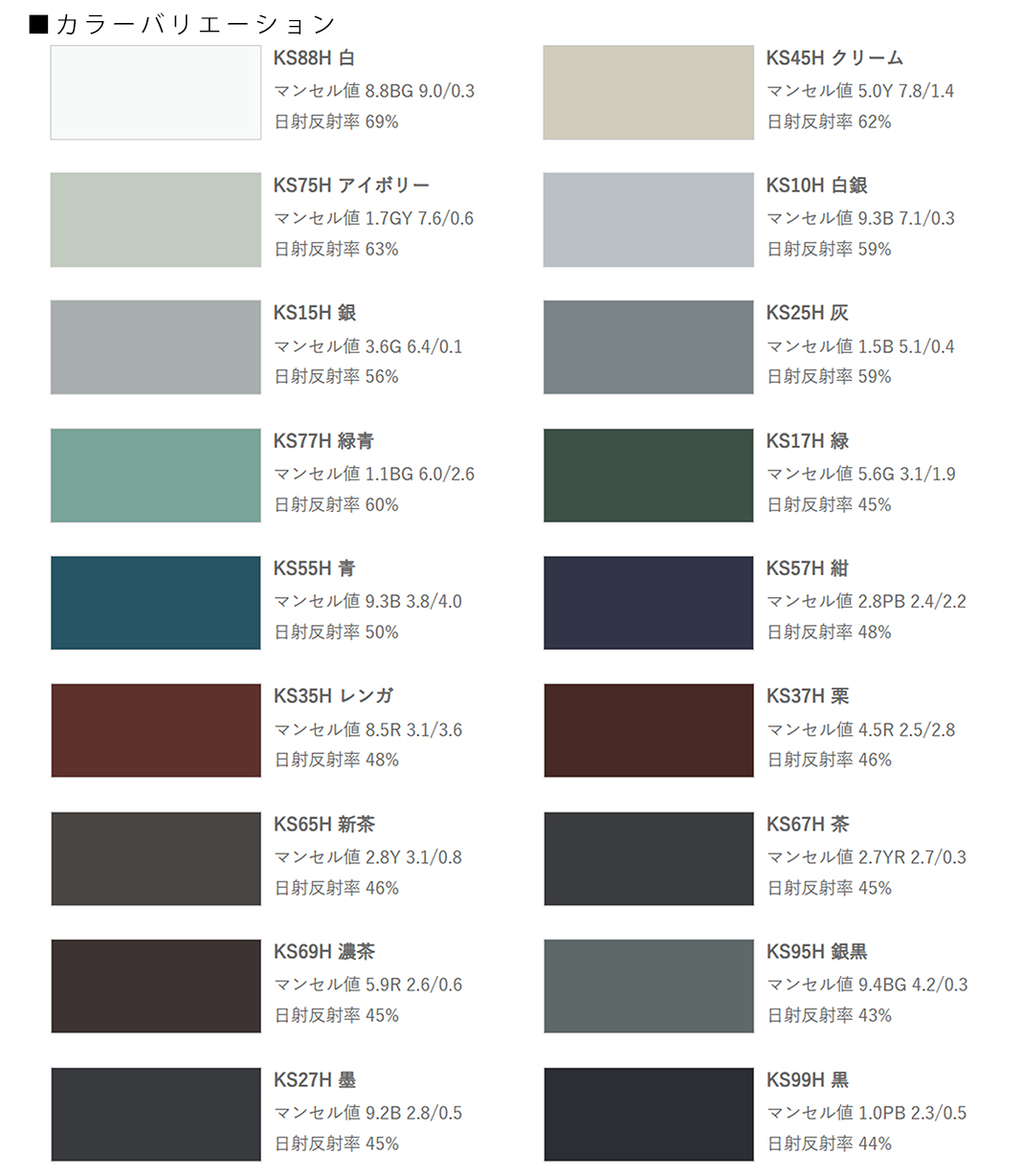 ー標準仕様ーニチハアルマカラー一覧>>